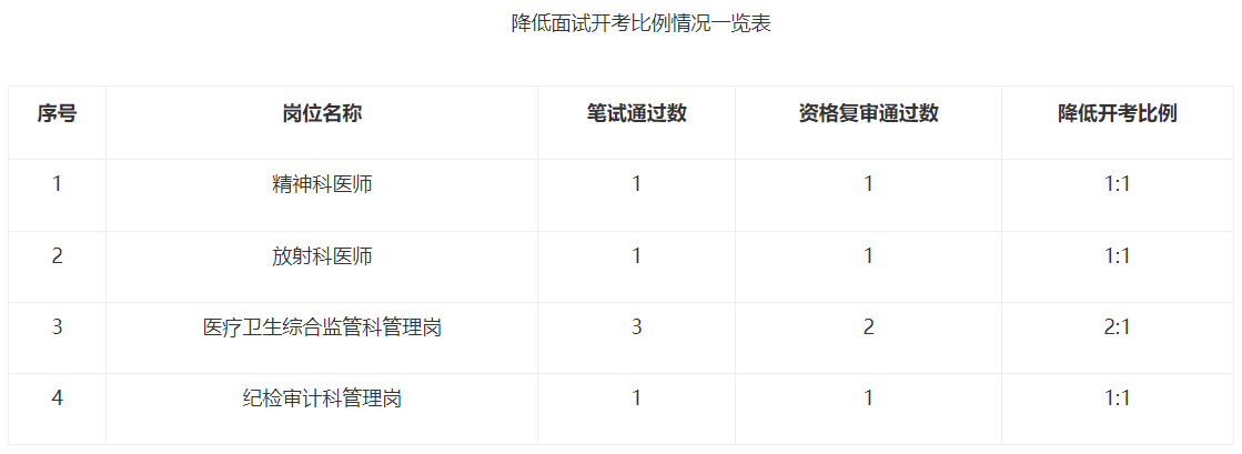 根据《宁夏医科大学附属中医医院2025年下半年公开招聘备案制工作人员公告》要求和资格复审情况,经医院公开招聘备案制工作人员领导小组同意,对4个招聘岗位降低面试开考比例。